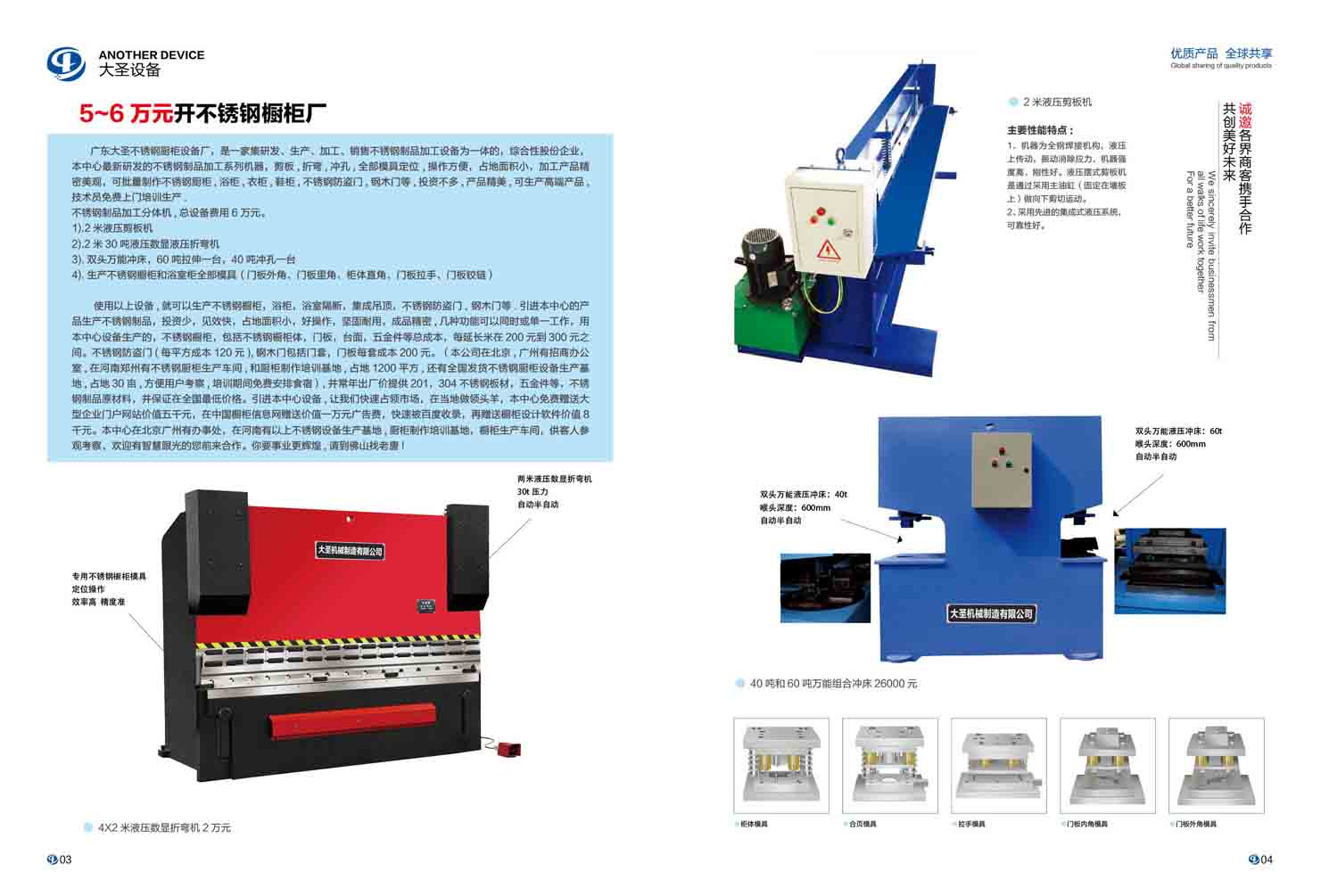 六萬元開不銹鋼櫥柜廠,剪板機(jī),折彎,機(jī)雙頭自動(dòng)沖床全部模具